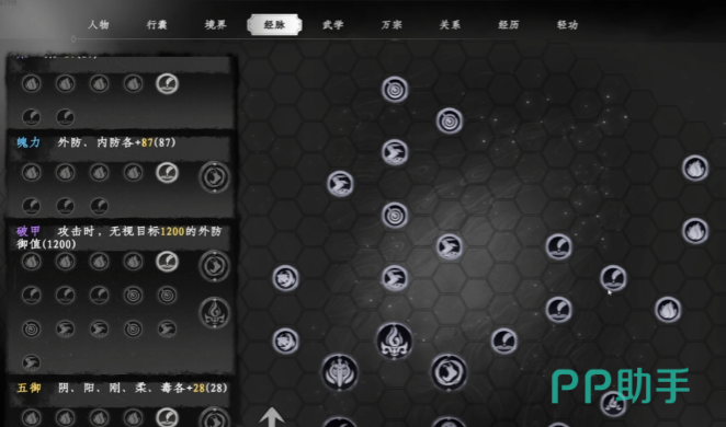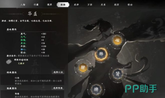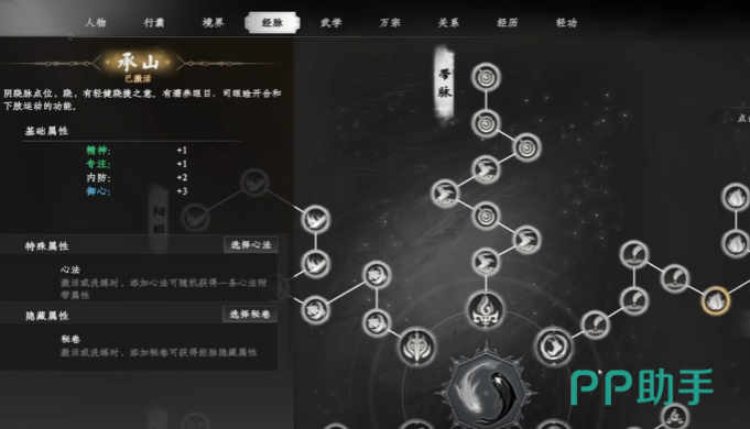 运行周天之前需先激活经脉穴位,玩家点击屏幕右边的江湖按钮,打开角色界面,再点击上方经脉按钮,即可进入经脉页面,呈现奇经八脉的完整分布,从每条经脉的尾部经脉点开始依次激活,每成功激活一个普通经脉点,玩家可获得相应的经脉加成点数,而激活中心经脉点,获得的加成点数更多,激活穴位通常需要消耗修为点,修为点可通过完成任务、探索特定地点、使用修为相关道具等方式获取,在激活穴位过程中,建议优先激活有发光特效或带有波纹动画的穴位,这类穴位往往能带来更显著的属性提升,且在后续运行周天的组合中具有关键作用。