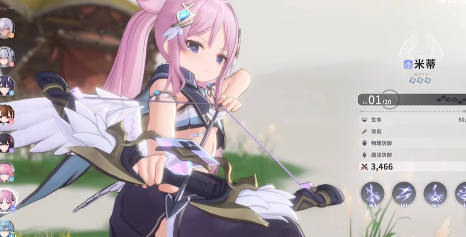 米蒂的普攻技能名为破空箭,这是一个最多能够给敌人造成三段攻击的招式,使用该招式可以对敌人分别射出2/3/4枚箭矢,能够造成232%的雷属性物理伤害。
