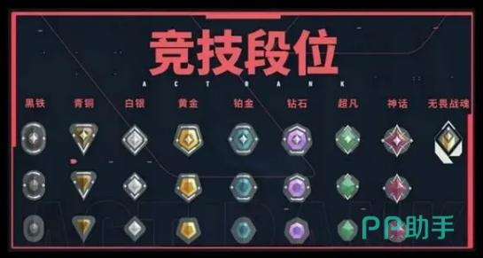 首先,了解一下游戏中的段位等级。游戏一共有9个大段位,每个大段位下又细分为三个小段。段位从低到高依次是:黑铁、青铜、白银、黄金、铂金、钻石、超凡、神话,最后是最顶尖的无畏战魂。简单来说,你从黑铁起步,随着胜场积分的增加,你的段位会逐步上升,直到你挑战到游戏的巅峰——无畏战魂。