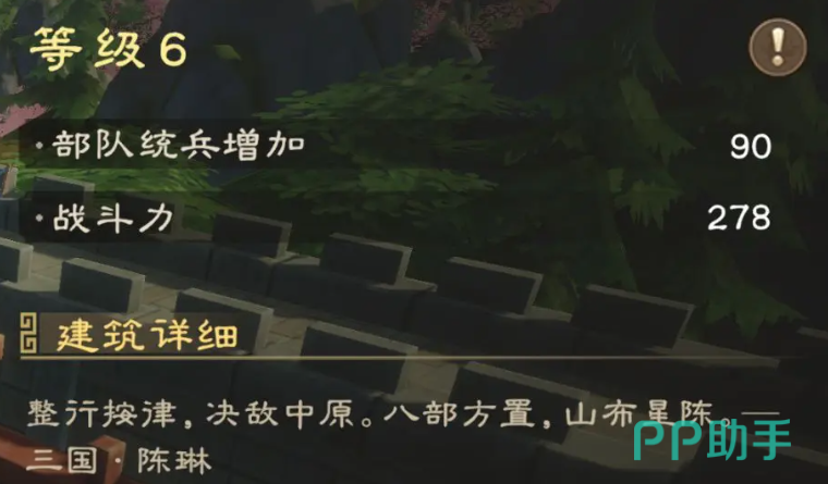 防御工事的建设就可以给大家的城市增加更多数值,城防值关乎主城与城墙的耐久度,坚固的城墙能让侵略者话费更多时间攻城,而周围的角楼则是反击的建筑,在遭受攻击时自动激活,其实这里建议大家选择与盟友共建防御圈,借助联盟互助机制形成更高的防御数值,而都尉府与四方馆的组合,前者提升集结部队容量与掠夺上限,后者增加求助次数与援军规模,这样的建筑让联合作战变得更有效果。