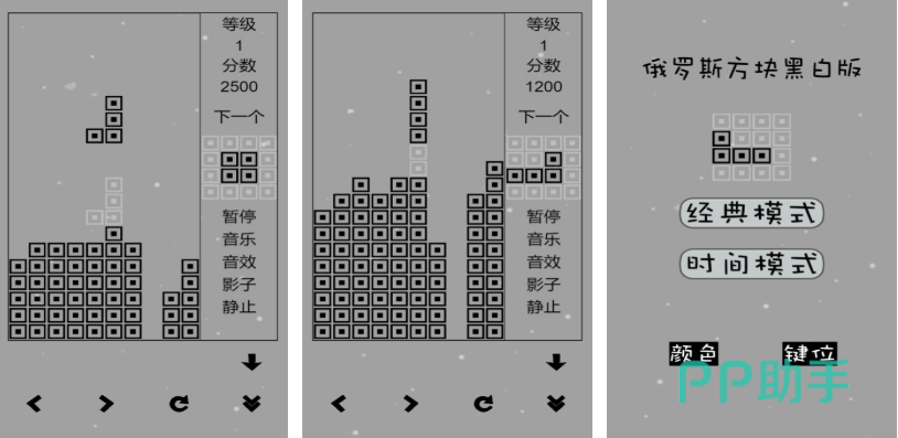 喜欢轻量级方块消除游戏的朋友一定要试试这款黑版本作品,本作画面表现并不出色但整体消除快感却毋庸置疑,还设定了倒计时的模式跟经典模式双重玩法,黑白背景和简洁的主题操作也是游戏的特色,还可以让玩家自定义改变按键的位置让操作更灵活,经典俄罗斯方块黑白版绝对是休闲解压时刻必玩的神作。