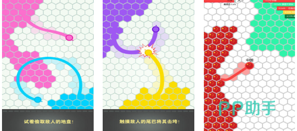 圈地围城大作战是款低维度且支持多人互动的2D竞技游戏,有着上手快和快节奏等超多的优点,六角形的地图跟各种色彩的配色辨识度极高,圈地竞技的特殊玩法也显得简单好玩,游戏其实竞争性质还是很弱的但规则绝对特殊,简单且精美的配色,让这款佳作更受欢迎,喜欢玩低维小型竞技游戏的话,就试试本作吧。