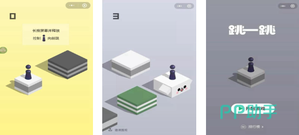 跳一跳这款低维单机游戏甚至都不用下载,直接在微信小程序里就可以即点即玩,特殊的点触操作考验玩家对机制的理解,方格形状的立体平台设定给人一种特殊的代入感,跳跃前进并参与获取积分的跳一跳玩法深入人心,比较简单的控制体系、轻松的气氛营造也是玩家的最爱,相信这款跳跃得分的经典单机游戏你也会喜欢。