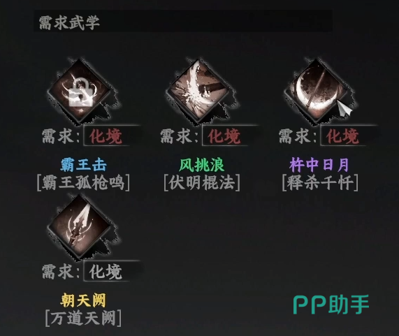 霸王击则是需要咱们前往鸿月门来进行兑换。兑换的方法可以去完成门派所发布的悬赏任务,之后便可以进行兑换了。杵中日月和朝天阙则是在大雪山这里和大长老来进行兑换这两本秘籍。