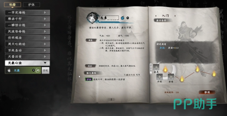 四象无极心法是减伤与免控流的基础,它为角色提供了重要的减伤能力,能有效降低受到的伤害,同时还具备负面效果免疫能力,为角色在战斗中的生存能力构建了坚实基础,而当扶摇九天与灵犀渡念两种心法融入其中后,角色的闪避率将得到大幅提升,移动速度也会相应增强,在战斗中面对敌人密集的攻击或者范围性技能时,高闪避率可帮助角色规避伤害,而快速的移动速度则让角色能够灵活地调整站位,及时脱离危险区域。