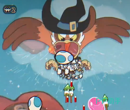 接下来,鹰探长登场了。虽然只有两种攻击方式,但它绝对是早期最具挑战性的Boss之一。鹰探长会释放大范围的小鸟弹幕,同时还会吸收之前发出的攻击蛋并进行二次爆发。这种二次攻击非常具威胁,尤其是小鸟弹的随机弹道让你无法预判下一步的走位,你必须不断调整位置来躲避。要是手滑没躲好,很可能就被一发致命。