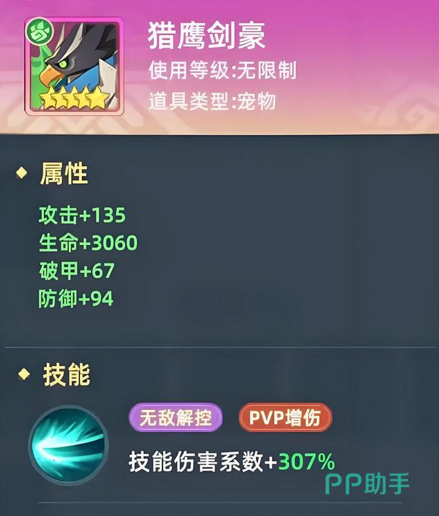 大家现在认为猎风传说猎鹰剑豪怎么样,因为这是每个玩家都可以获取到的宠物,所以它的应用非常广泛,大家在清楚技能效果之后,也就知晓在哪些场景下能够发挥了。总之需要做的就是尽量发挥优势,这样每个宠物的特点都能展现出来。