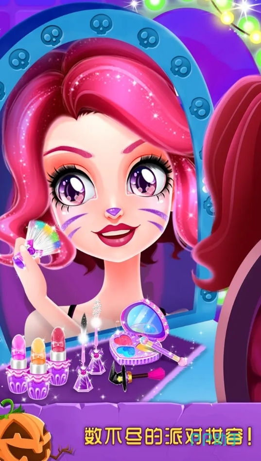 为了能在万圣节舞会上一鸣惊人,玩家们将协助角色搭配出能让人惊叹的美妆造型。它里边能用的化妆道具很是丰富,还有诸多配饰能随意搭配,使得各位能完全发挥出自己的创意,无论是为角色化一个有鬼怪元素的妆容,还是让她变成闪耀动人的公主,都能在玩家的化妆技术下得以实现。各位还能通过游戏内的一些趣味内容来获取很多的糖果,好兑换出更多可用道具用里完成妆容设计。