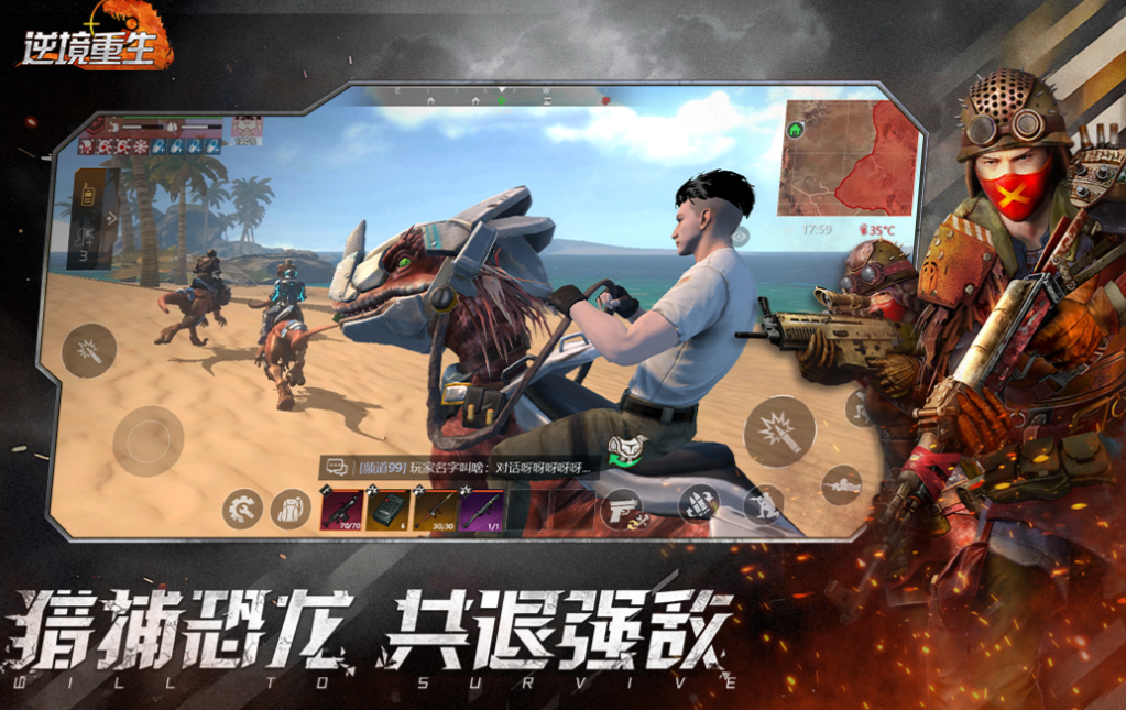 逆境重生这款开放世界生存游戏居然可以驯化恐龙坐骑,超前的生存理念和沙盒元素耐玩性更强一些,武器装备都需要自己收集物资才能打造,在黄沙漫天的末日世界重生互动的感觉十分刺激,精彩好玩的生存互动体验和刺激的TPS玩法交相呼应,其实这款沙盒游戏具备着极强的社交性,可以让玩家邀请朋友共同参加生存冒险。
