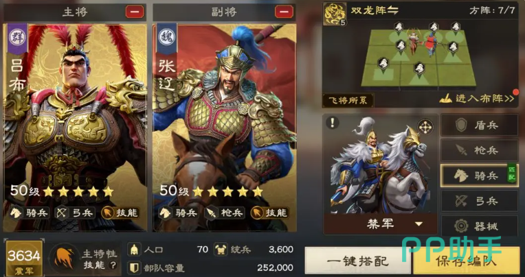 若追求极致控制,可将马超替换为郭嘉,这位谋士不仅能延续缴械与沉默的组合,更能强化全队技能伤害,使控制与输出达成完美平衡,与控制骑的细腻手法相比,技能骑走的则是刚猛霸道的技术流路线,双核骑配置以赵云与张辽为核心,采用禁军兵种获取击飞特效与暴击加成,双龙阵的布阵进一步提升了队伍的整体战力,张辽的摧坚破盾满级后带来的怒气恢复效率质变,搭配赵云自带的回怒机制,让这支骑兵部队始终保持着高频的技能释放节奏,每一次技能既能在短时间内倾泻恐怖的伤害量,又能在持续作战中保持稳定的输出收益,当面对生存能力较强的盾牌大队时,这套组合能凭借技能穿透力打破僵局。