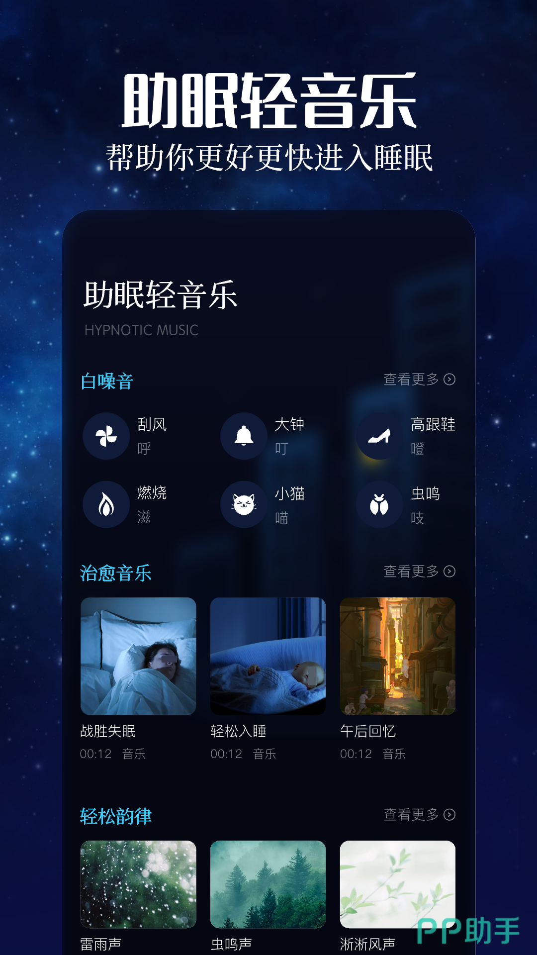 趣听音乐是一个助眠音乐类App,在软件内拥有大量助眠歌曲,包括白噪音、纯音乐、治愈音乐等形式,通过这些音乐可以帮助大家获得一个静谧的睡眠享受,提高睡眠质量。同时软件还根据不同的时间段,为大家设置好各种分类,比如睡前音乐,休息间隙音乐等。