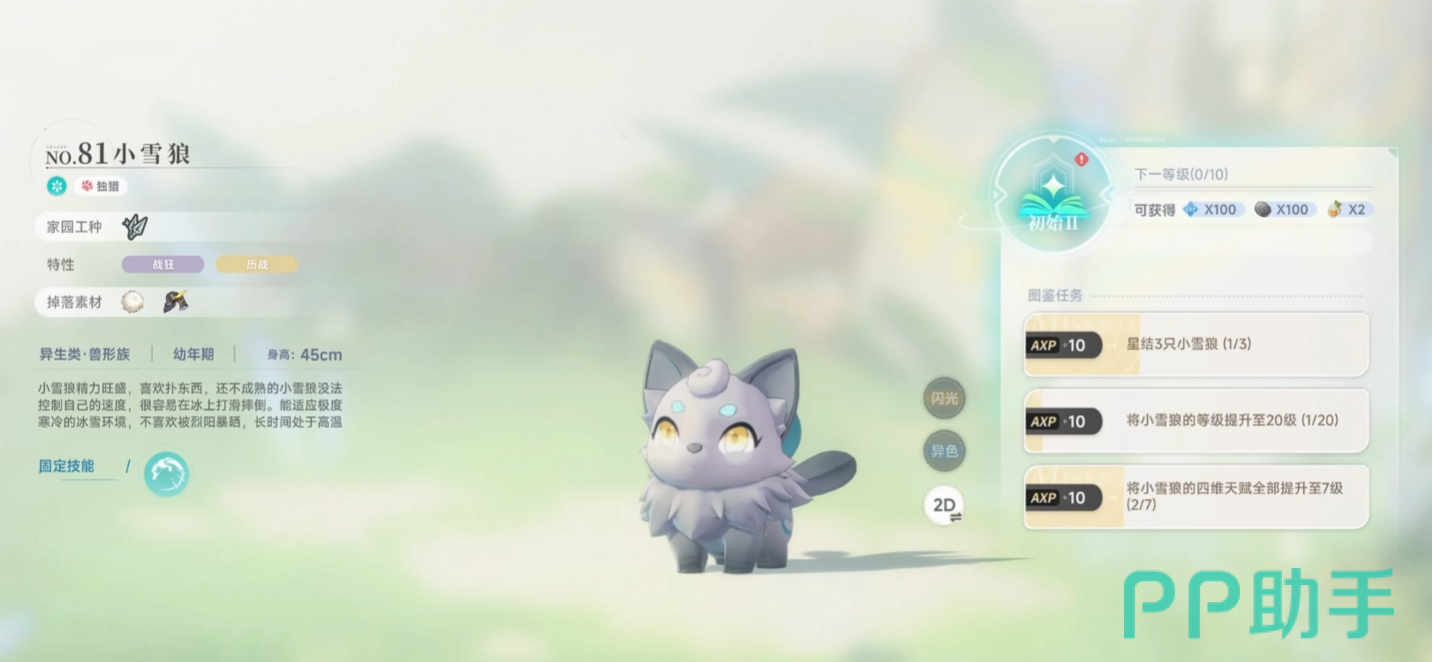 霜刃狼一共有三个形态,第一个形态是小雪狼,玩家可以通过游戏开局的剧情任务直接获取,也可以在夏露露周边区域捕捉幼年奇波。当小雪狼的等级达到20级过后,玩家使用冰晶核心便可以将其进化成冰速狼。冰晶核心的获取方式也比较的简单,只需要在野外含有冰属性的矿脉进行战斗或者采集就可以获取了。当冰速狼达到35级过后,玩家需要来到洛斯兰瑟领域,在该地点完成隐藏任务霜风的试炼,并且消耗游戏中的稀有材料极寒结晶,就能够让冰速狼进化成霜刃狼。