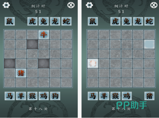 游戏中的玩家,需要熟悉十二生肖的顺序,也是以文字的方式进行呈现的,将传统的文化以及休闲益智接龙玩法,融合在一起。显示出了每一个生肖的文字以后,玩家需要根据自己掌握的规律,利用点击不同的文字,在规定的时间内完成接龙,使十二生肖可以顺利的排列起来的情况下,就可以完成闯关,有特别简约的风格以及超级简单的玩法。