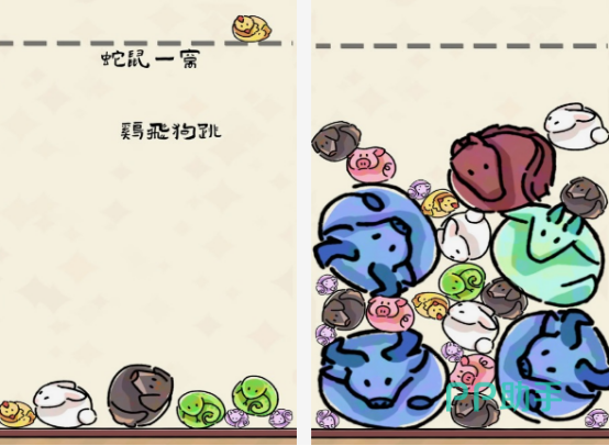 以十二生肖中的各种小动物为主要的玩法,无论是在合成的过程当中,所需要注意的策略,还是展现出的效果都是非常有趣的。屏幕上会不断的有十二生肖的小动物不断的下落,利用控制下落的位置,可以达到很好的效果,左右滑动屏幕以后,就能使生肖掉落的位置发生改变,利用进行的合成以后,打造出不同的小动物效果。