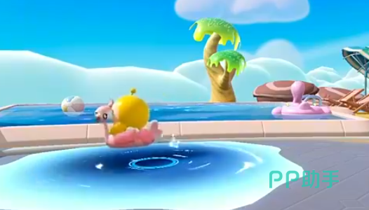甜甜雀互动动作也很可爱,有将自己变成游泳圈,带着小蛋仔在水中悠闲划水,还有在地面上跳优雅的华尔兹、着急生气以后用嘴啄一下小蛋仔,以及在悠闲散步以后,突然发现我们快速逃离现场。