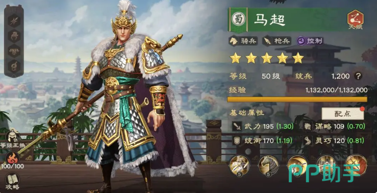 马超他最引人注目的能力莫过于强力的沉默附加与怒气削减机制,这两大特质让他成为所有技能流阵容的噩梦,1.30的武力成长确保了他的基础伤害足够可观,而1.19的统御成长则为持久作战提供了一定的能力,战斗中马超如同幽灵般穿梭于敌阵,时而施加沉默封印敌人的效果,时而降低其怒气值扰乱节奏,双管齐下的干扰策略极大削弱了对手的输出效率,而他自身的主动技覆盖范围很大,最后一记附带击飞效果的终结一击输出数值很高即便脱离控制职责,仅凭主动技的高额伤害,马超依然是值得信赖的输出担当。