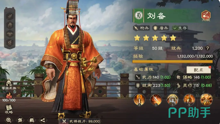 刘备绝对是蜀国阵营的核心角色,高达1.5的统御成长赋予了他不错的主将天赋,当他施展主动技时,能在中等范围内对笼罩其中的敌军造成持续性灼烧伤害,与此同时,这片能量场还可以持续治愈己方轻伤单位,尽管刘备的武力成长稍显逊色,导致主动技的直接伤害有限,但他真正的价值在于构建起持久稳定的后勤补给,被动技能显著提升了部队全体成员的伤害抗性,大幅削减来自普攻与技能暴击的威胁,更值得一提的是通过王霸之略的加持,每当己方武将释放技能时,都有概率触发群体持续治疗效果,虽爆发力不及纯输出阵容,却能凭借源源不断的续航能力,在拉锯战中找到自己的用处。