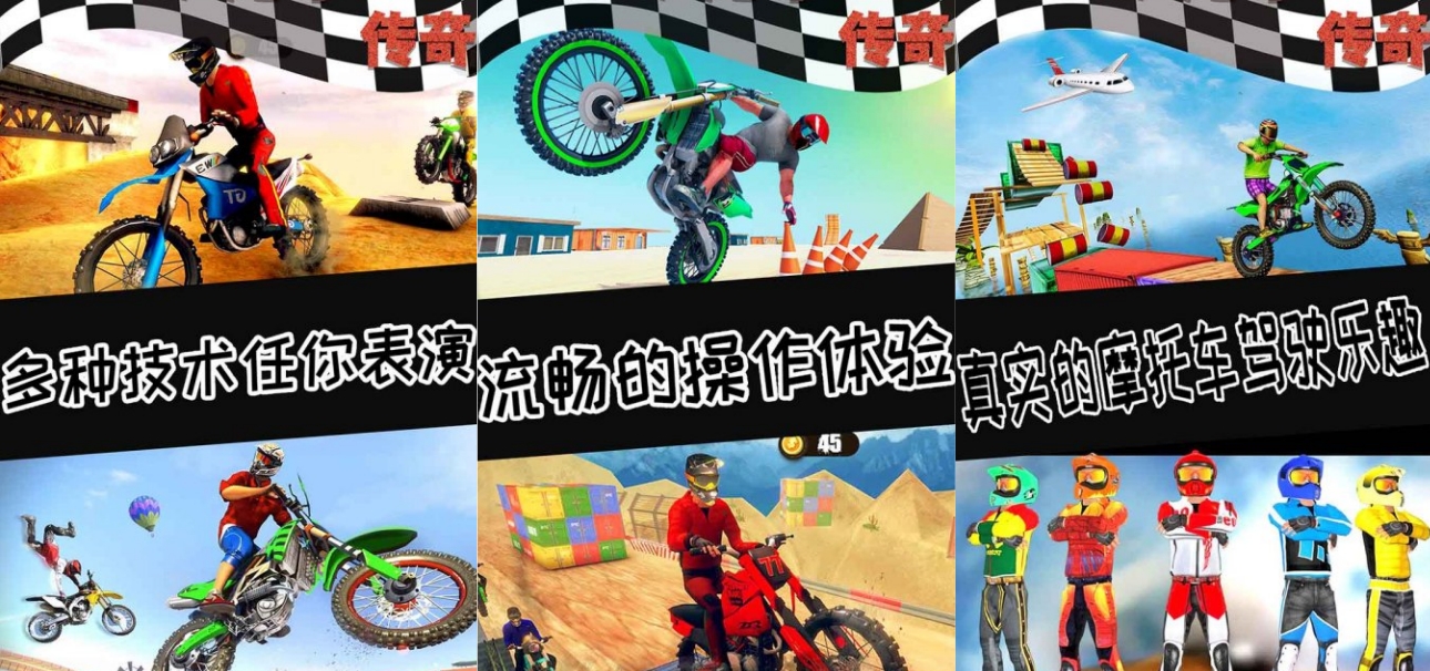扮演一名特技摩托驾驶员去挑战各种艰难险阻的赛道,你可以自由选择摩托车手的服装与外观,来到专业的赛道上挑战不同高度和弯曲的路线,每一辆摩托与赛道建筑的建模都有棱有角,可以让你体会到不输3D游戏的立体感,另外本身还有多种摩托动作等待你去探索,每次完成特技动作都会有明显的视觉和音效反馈,让你在操作之余得到极大的心理满足。
