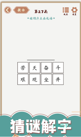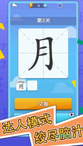 一款趣味闯关小游戏,玩家在游戏中能够逐步解锁更多汉字主题关卡,通过变换不同的汉字组合来迎接挑战。游戏提供了丰富的挑战模式,比如知识答题闯关和汉字大师对决等,让玩家在享受游戏乐趣的同时,也能不断自我提升,增进对成语的理解与运用。玩家不仅能接触到许多的汉字,还能通过游戏不断丰富自己的汉字知识库。游戏不仅考验玩家对汉字的认知,还要求掌握正确的书写顺序和笔画技巧,提升汉字书写的规范性。