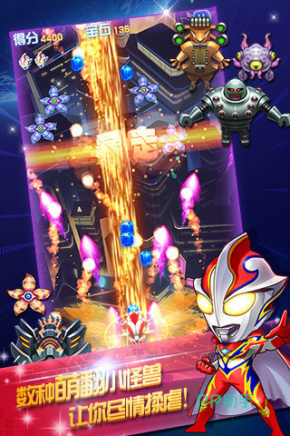 这款游戏参考传统植物大战僵尸的基础模式,但进行了大胆革新,将所有植物角色替换为自昭和时期至新生代各个阶段备受粉丝追捧的奥特曼形象。游戏中,玩家轻触屏幕,就能把喜欢的奥特曼部署在花园小道的重要位置,等能量积攒充足,奥特曼就会发射强劲光线,清扫沿途所有僵尸,顺利保护花园就能过关,这种新奇好玩的玩法,肯定会让你沉浸其中。