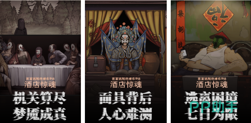 这款密室逃脱主题的游戏背景设定在恐怖的酒店里,人心叵测的剧情和压抑的环境成正比,解谜互动性质特殊带来的推理快感毋庸置疑,地图上的角落都可以寻找到各种道具资源辅助解谜,快节奏的解谜闯关过程是其他密室游戏不具备的,机关算尽的特殊解谜机制带来的沉浸感更强。