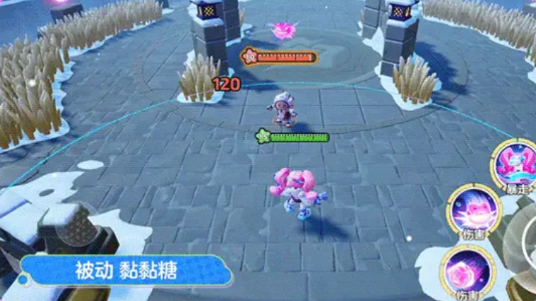 被动“黏黏糖”,她的普攻在命中敌人时,会叠加一层黏黏糖效果,并在延迟4秒之后爆炸,期间每次普攻都会叠加层数,叠加到4层时立刻爆炸,并造成范围伤害,每层的伤害还会提升,暴走形态下,每次普攻会发射2枚泡泡,黏黏效果也会叠加两层。