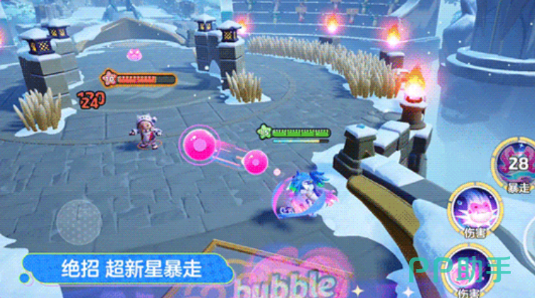 期间普攻发射2枚泡泡并叠加2层黏黏,第二枚泡泡造成20%伤害,暴躁形态下,泡泡漂流的飞行速度和2技能的爆炸范围,都会得到一定程度的提升,且不能被技能阻挡;被动情况下,在击败目标或完成助攻时,暴走形态会延长三秒。