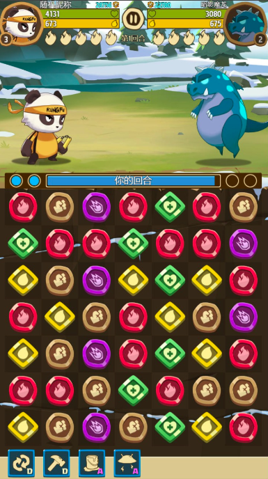 再来说说他的消除玩法,他进行了特殊化设计,将消除元素设计为七大主题,7种可触发不同技能的灵石,从普通攻击到技能攻击,再到魔法恢复、格挡反击,玩家通过策略消除这七种元素的灵石,可为每名英雄角色进行技能蓄力。并且在一些boss关卡中,Boss也可对这些灵石进行收集,因此让很多关卡变得更具竞争感,趣味度也翻倍。