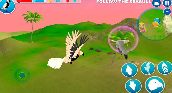开放世界探索围绕环境互动与隐藏内容展开,地图涵盖热带雨林、草原牧场、雪山峡谷、古老遗迹等多种生态场景,每个场景都有独特的探索元素,热带雨林中,玩家可操控鹦鹉穿越藤蔓障碍,在树冠层寻找隐藏巢穴,草原牧场的风车区域会产生上升气流,鹦鹉借助气流可实现长时间滑翔,到达高处平台,雪山峡谷需注意低温环境,鹦鹉暴露在低温中会逐渐失去活力,需寻找温暖的洞穴或使用保暖羽毛道具恢复状态,古老遗迹中分布着神秘符文,鹦鹉触碰符文可触发机关,解锁隐藏通道或宝箱。