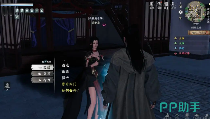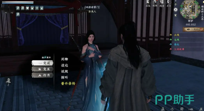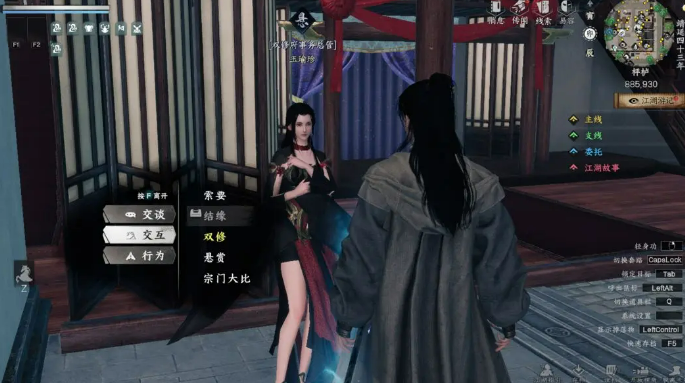 一开始,拜入双修府并不像其他门派那样简单,你得具备一定的“诡辞”属性。达到120以上后,你就能在859.967这个位置找到春晴,开启“婚前思忧”这个故事线。跟随指引,一路完成任务,最终在双修府的大门前等着你的是一场令人兴奋的挑战:是否能够加入这个神秘且充满诱惑的门派?
