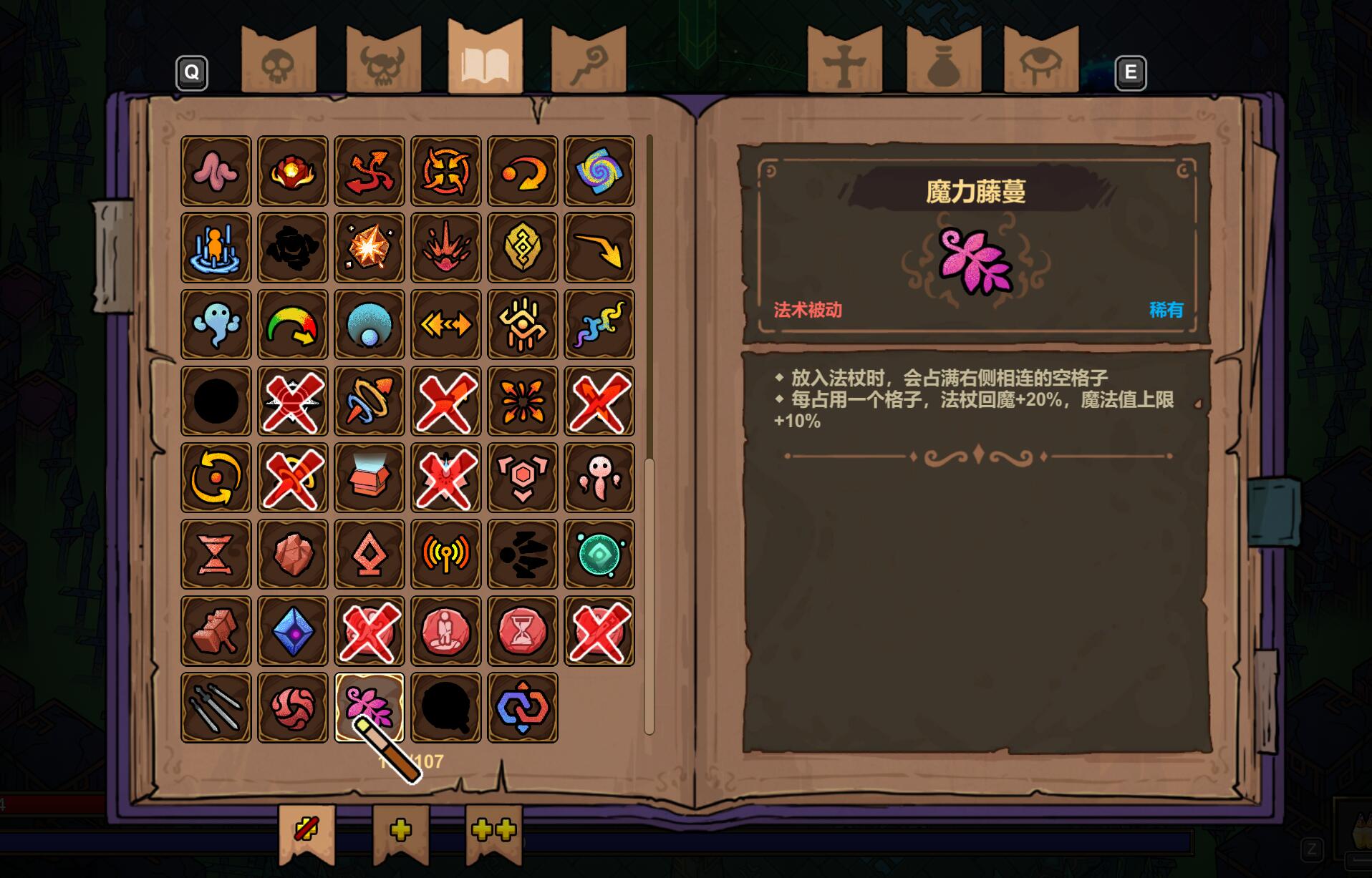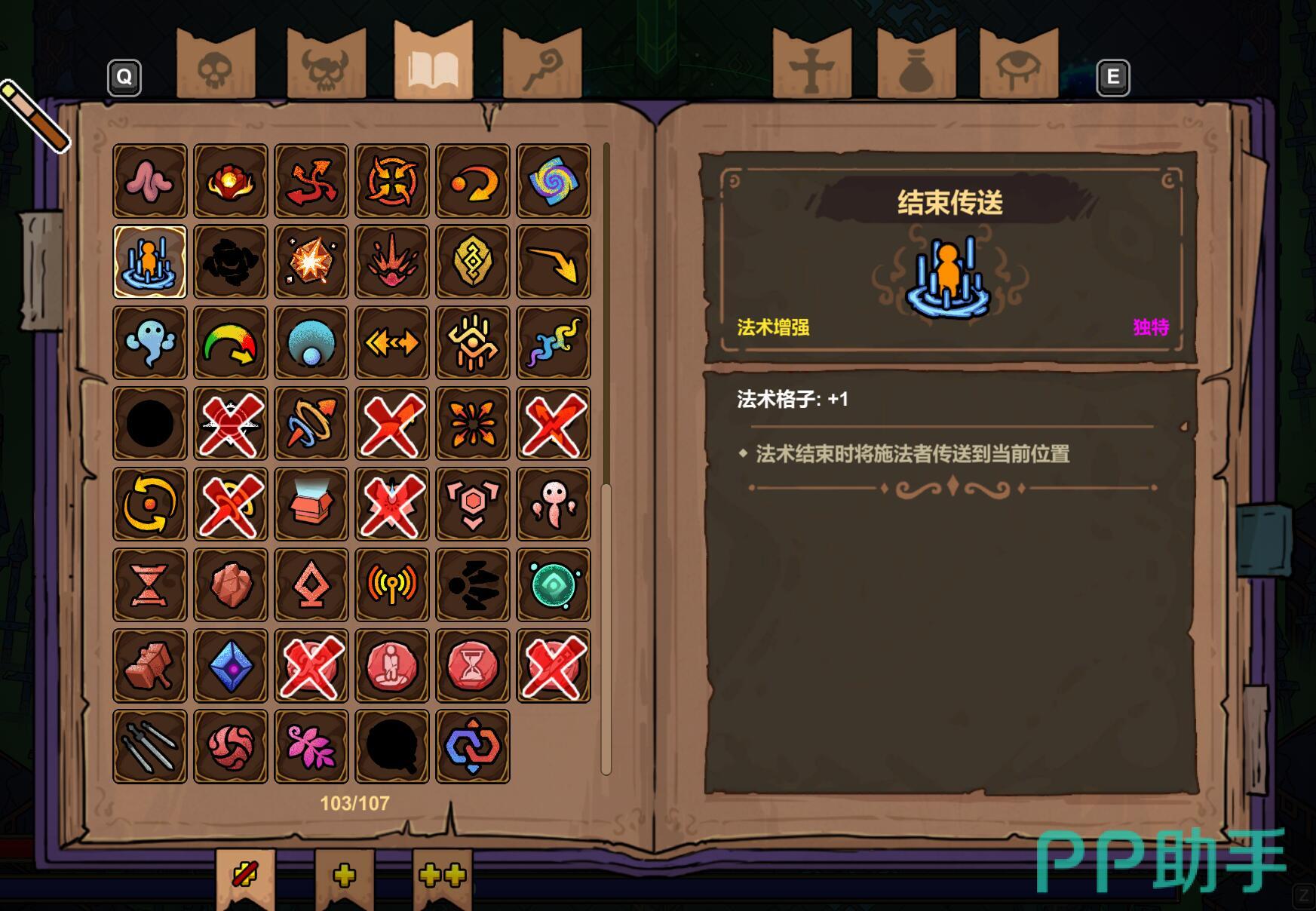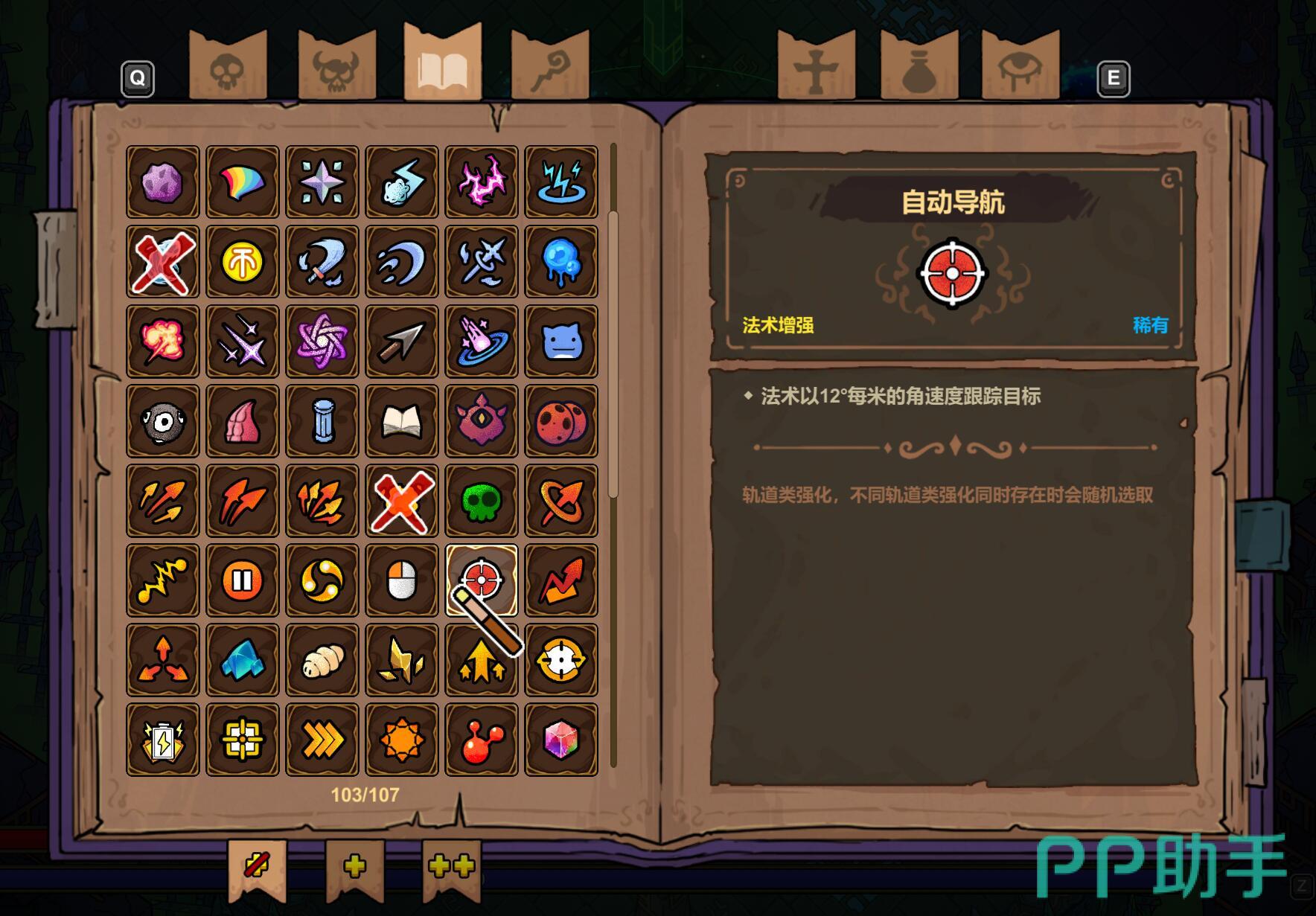 在辅助法术方面,寻踪的优先级最高,它能让非追踪法术获得自动瞄准能力。多重射击的性价比极高,直接提升输出频率。节能模式可以大幅降低高耗法术的蓝耗,让陨石、诡雷等强力法术变得可用。冰霜结晶是唯一的群体控制技能,5秒的冻结时间足以改变战局。