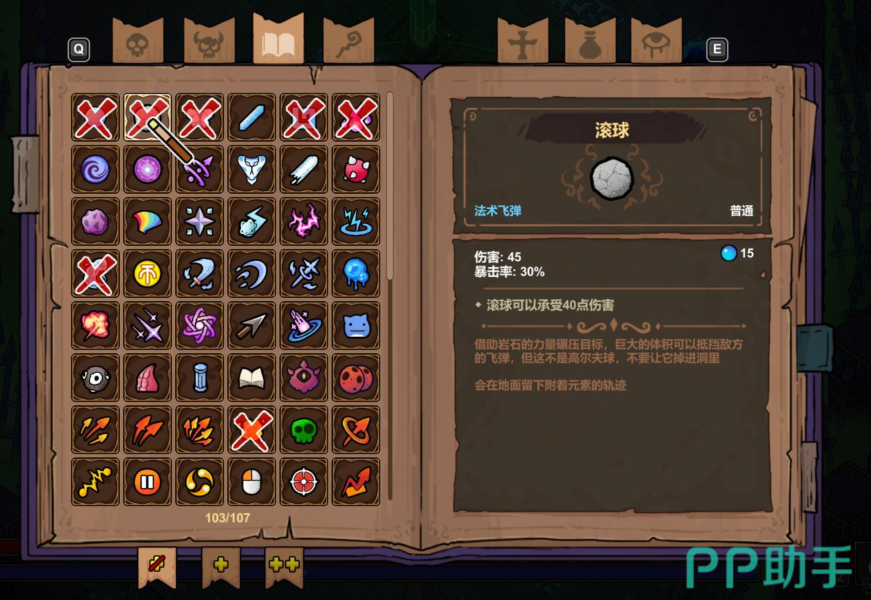 主动攻击型法术是最基础也是最重要的输出手段。魔法弹作为最基础的法术,消耗低但伤害稳定,是新手开局的可靠选择。滚石则兼具攻防一体特性,不仅能造成伤害还能阻挡敌方弹幕。黑洞拥有强大的范围吸附能力,配合持续伤害效果可以形成绝佳的控制区域。落雷阵通过连锁传导实现大范围AOE清场,是后期清图的神器。