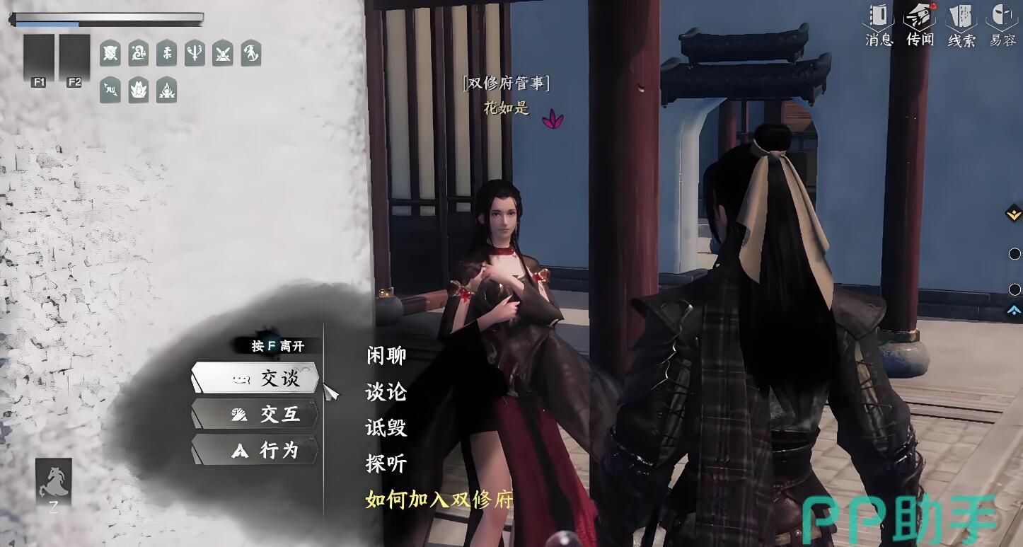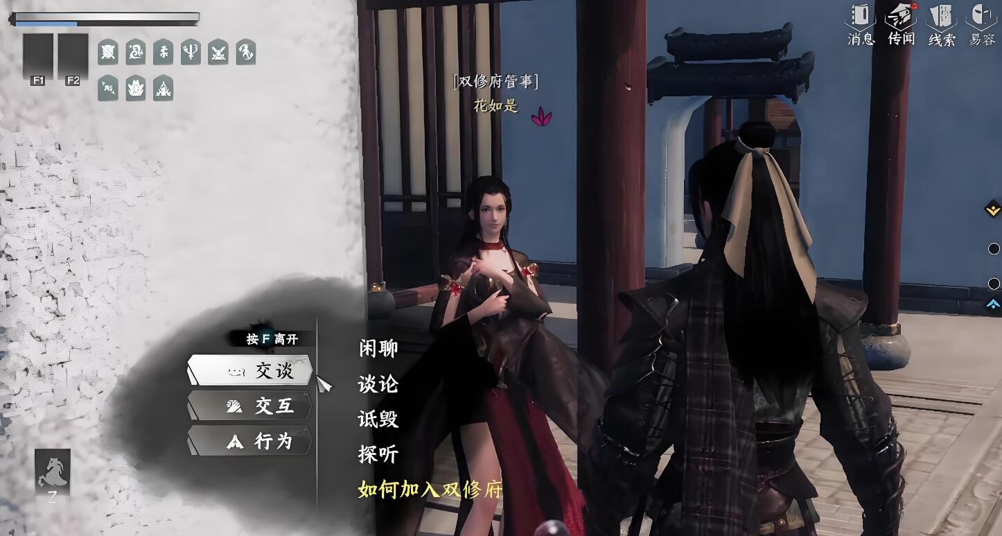 完成前提后,前往枰栌城坐寻找NPC。与她对话触发“婚前思忧”任务,按指引完成跑腿内容,包括与谷夫人对话、传递指定物品等。任务完成后,NPC会给予“入梦信物”作为入门凭证。持信物前往千奇坊,在此需解救NPC小翠并通过对话说服她加入双修府。最后一步是前往枰栌城与花如是对话。此时需参与入门考验并顺利通过,即可正式加入双修府。整个过程虽无高强度战斗,但步骤衔接紧密,尤其诡辞属性的积累可能耗时较长,建议提前规划。