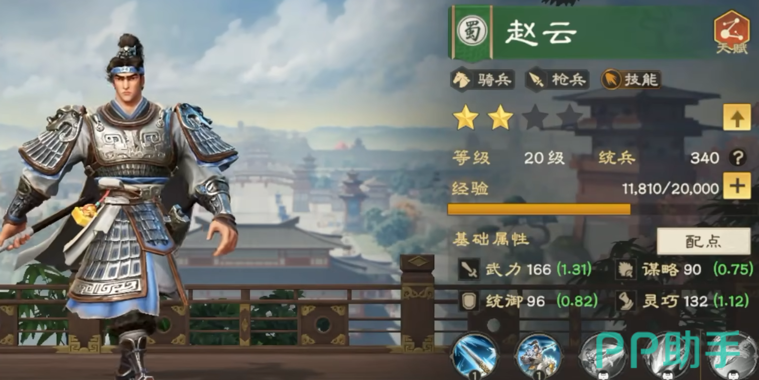 赵云在《偃武》中被定位为高爆发技能型输出武将,其武力成长值高达1.31,属于游戏中最顶尖的T0级别,满级后武力属性可轻松突破200大关。这一数值在同类武力核心武将中名列前茅,奠定了其作为主力输出的基础。统御属性方面,赵云的表现相对普通,这意味着他虽有不俗的输出能力,但在持久战和多队混战中容易成为薄弱环节,需要合理搭配阵容弥补这一短板。兵种适应性方面,赵云精通骑兵和枪兵两种作战形态。骑兵形态下,赵云拥有出色的机动性和爆发力,特别适合执行突袭和速攻战术;枪兵形态则提供了更稳定的输出环境和一定的控制能力。