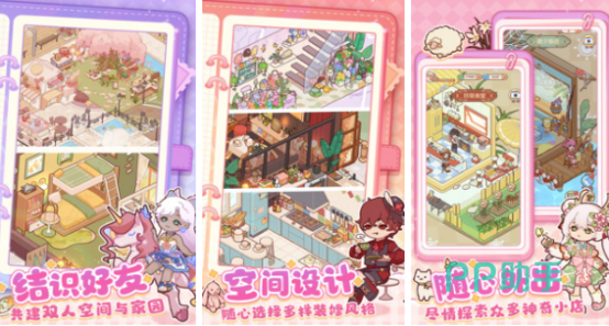 足不出户,享受简单的休闲时光,拥有一套精心设计的小窝,在家里轻松躺赢,享受撸猫网购等多种非常欢乐的休闲时光,当出门之后就能够遇到很多神秘的故事以及多样化角色。这款非常有趣的探索类游戏,将与喜欢的npc共同搭建双人小屋,也能够与志同道合的好友共同建造家园。
