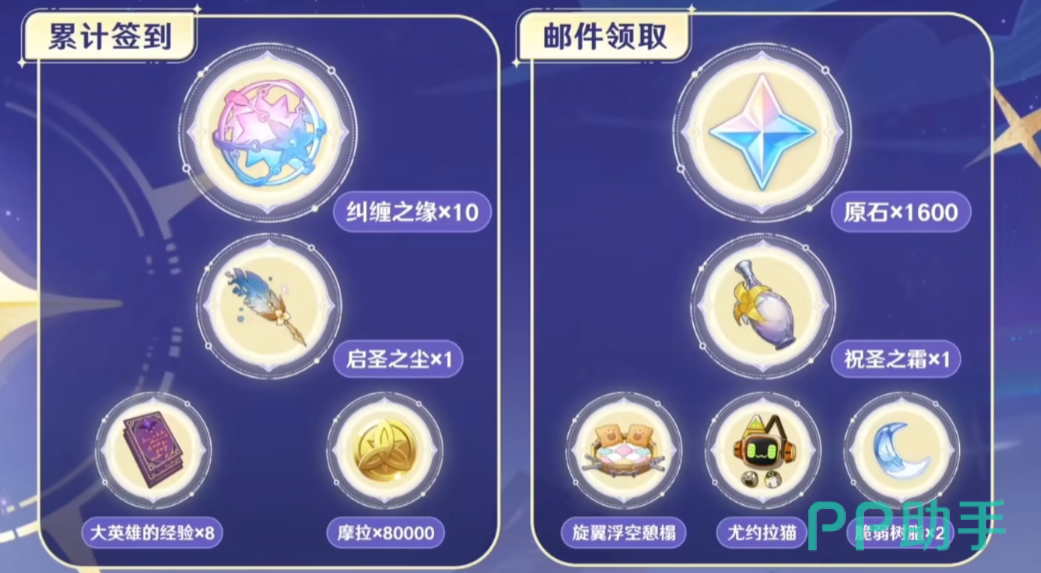 作为五周年庆版本,6.0预计会带来大量实用回馈内容,包括但不限于:常驻五星角色自选,预计会加入“梦见月·瑞希”等新的候选。登录奖励包括纠缠之缘、1600原石、小龙跟宠、专属道具等。首充双倍奖励重置。活动免费赠送新四星角色或武器。