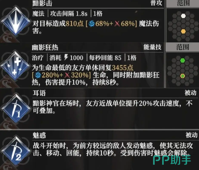 暗影神官作为支援角色,在攻打boss的时候,玩家其实还是需要了解他的技能,比如他的被动技能二魅惑在开局的时候,就能够直接控制boss,如果boss周围的小怪物特别的多,暗影神官也能够施展被动技能2直接将这些给控制,然后整个团队就能够有更多的时间去输出。再搭配其他角色的时候,暗影神官可以搭配海伦娜,因为海伦娜的被动技能开局破除一层的稳固,这两者要是搭配在一起的话,就能够打断boss的技能循环,为下面的战斗做好铺垫。