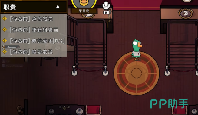 上面给大家介绍的内容就是鹅鸭杀呆呆鸟是干嘛的,作为一个中立阵营的角色,玩家可以在游戏里单纯完成自身的任务,基本上不需要只想其他角色的阵营,游戏还会设定决斗呆呆鸟,这是一个进阶版本的角色,这个角色想要获得胜利的话就需要先杀掉另一只呆呆鸟,接着再通过投票出局的方式赢得胜利。