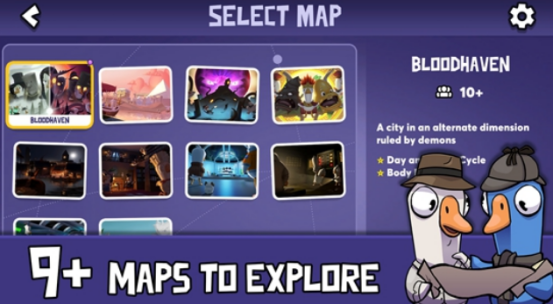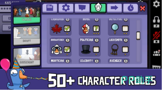 此游戏在开局之后分别呈现出了私人以及公共游戏大厅,您可以和自己的好友根据自己的喜好,随意选择不同的模式,可通过语音聊天的方式,拉近彼此之间的感情和距离。其中也设立了5种不同的游戏模式,比如经典模式以及用餐模式等等,还有30多个子角色,任凭玩家随意操控。每种角色在阵营当中都起着至关重要的作用,必须了解每种角色的最大优势。