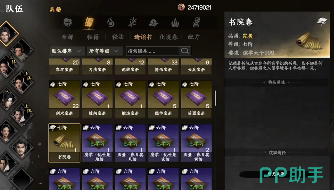 而书院卷则需要玩家们完成迦南宝库系列的任务,并从中获得迦南剑。迦南剑正是打开迦南遗迹的钥匙,进去之后需要完成一番boss战,然后与边上的枯骨进行交互,就可以从他的身上拿到书院卷。玄门法的获取难度则会高一些,需要玩家们的玄机值大于700,然后你需要前往铸剑山庄,在这里的山顶上有一个叫做程鹿的npc,触发对话之后需要将其打败,并且从他的身上获取到玄门法。