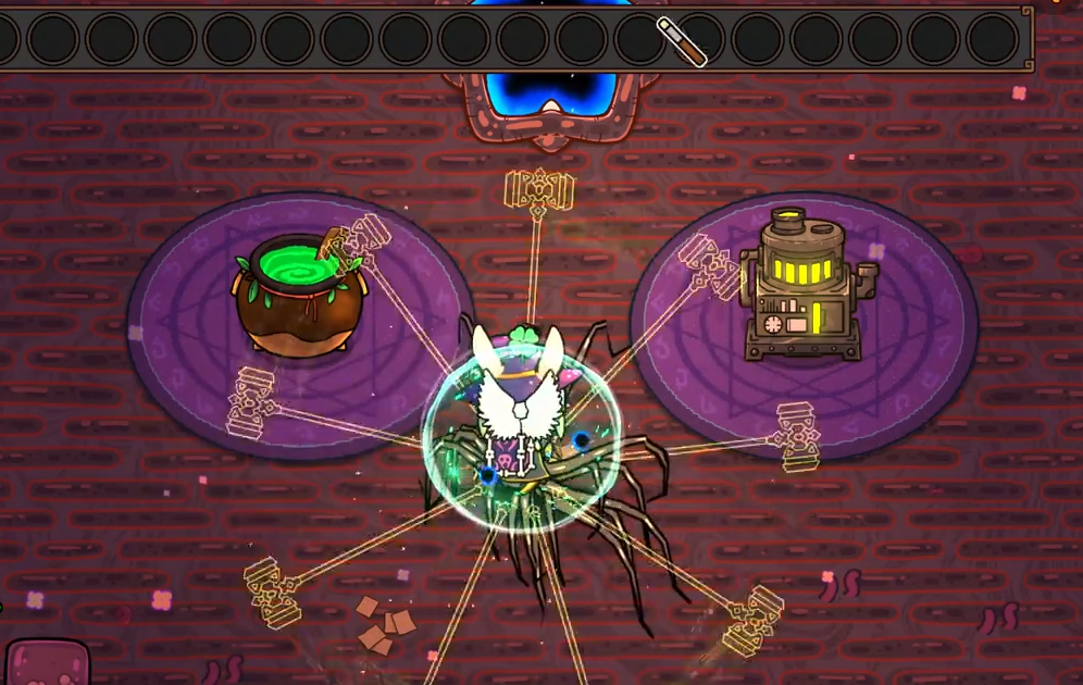 自爆虫流则展现了召唤策略的另类可能,核心组件包括"虫巢"、"尸爆术"、"寄生虫"和"多重释放"。虫巢持续召唤自爆虫子,尸爆术提升爆炸伤害,而寄生虫将所有召唤物伤害按比例转化为玩家生命恢复,形成"召唤-爆炸-回血"的永动循环。构建过程中需注意平衡。前期优先点满虫巢数量上限,中期升级寄生虫等级,后期补强生存被动。法杖选择以增加召唤物伤害为主,遗物方面"野兽之牙"(无视部分防御)和"魂骨铠甲"(减伤)能有效提升稳定性。该流派在狭窄地形表现优异,可将虫子集中引导至狭口形成爆炸火墙,但对飞行敌人效果较差,需在后方增设光之柱屏障弥补。