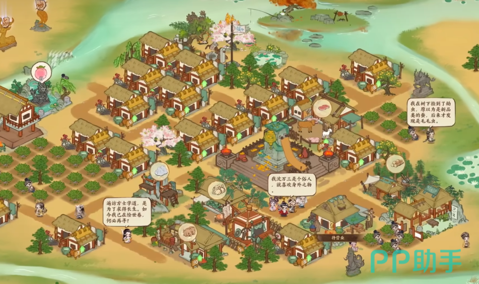 在游戏里,玩家首先需要做的就是,修建一个比较基础的村落,可以自由进行各种建筑的摆放,接着就可以在这里招募更多的人口,这些村民可以帮助玩家建造基础的设施,同时还可以种植农田,可以让玩家得到更多的粮食资源,有粮食之后就可以拥有更多的人口,能大幅度提升城市的发展速度,同时在游戏里还需要修建工坊,有了这些工坊之后才能建造一些物品,等到基础设置施修建完善之后,就可以招募贤才,里面会有大量的名士,每个都会有不同的属性,他们也会身处各个不同的时期,招募过来之后就可以辅助城市的建设。