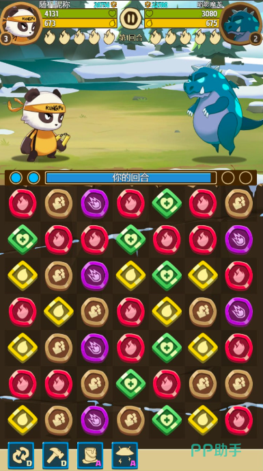 除此之外,他的消除玩法模式,也是加入了很多的创新策略。除基本的三消,以及一些特殊特效的触发外,他还设计了七大元素,从普攻到技能攻击到生命恢复,再到魔法恢复,七大元素对应七大技能,在战斗的时候给予角色不同的帮助。