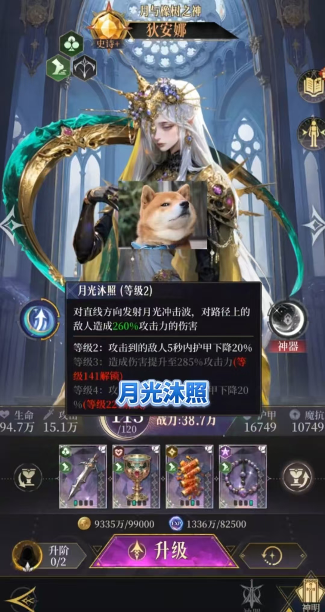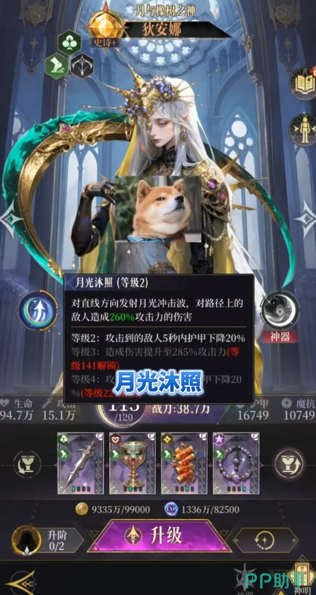 狄安娜技能有月相、月轮、有终极大招月光沐照时优先升级大招。月相能为全体提升移速和攻速,并且持续获得能量。月轮是辅助技能,能对护甲最高的敌人造成百分比破甲,大招月光沐照更是范围伤害,释放技能就像月光洒下,让她保持高贵优雅的同时,在战场上也有出色表现。