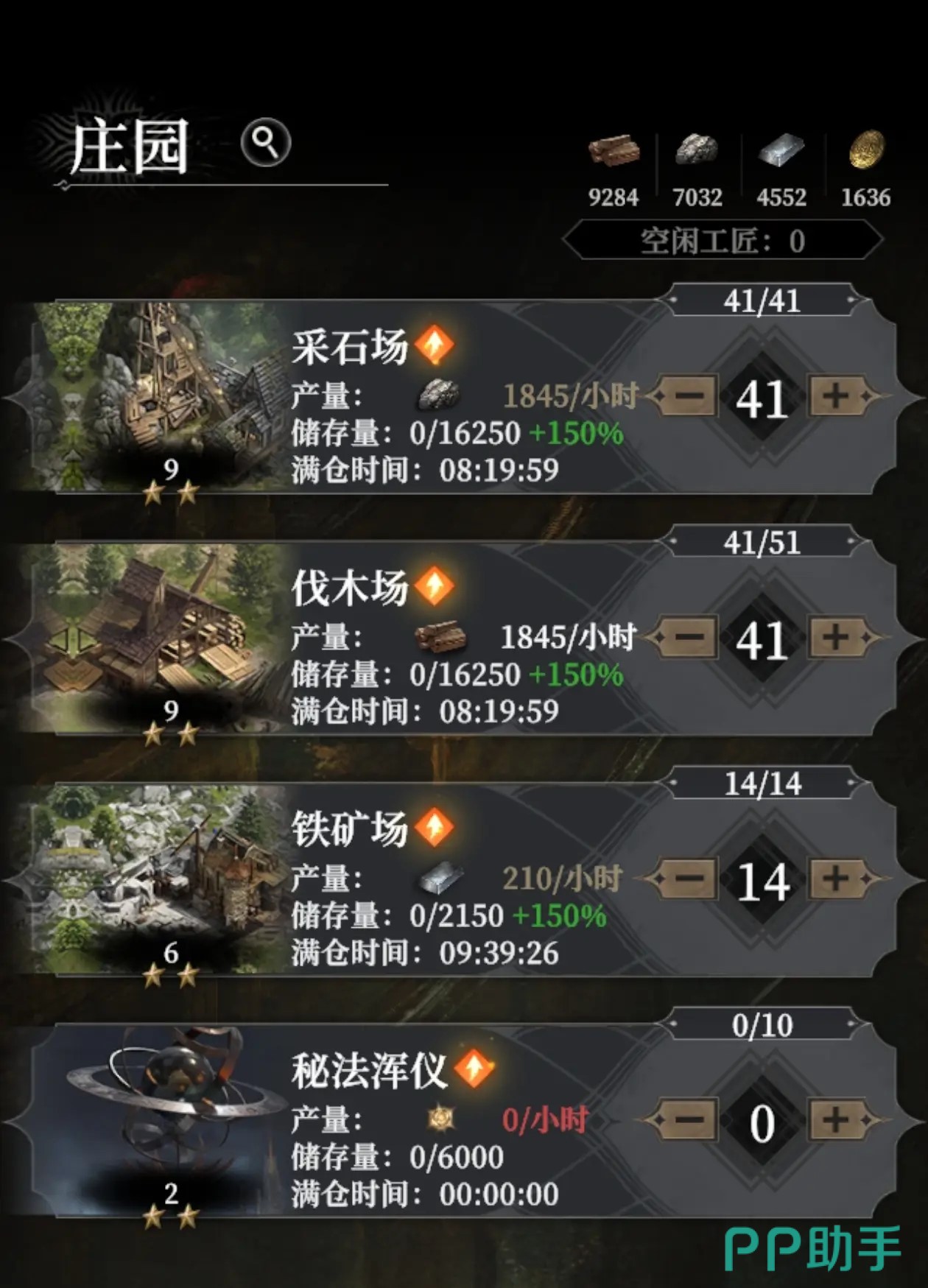 在游戏的庄园玩法中,其产出还会影响可分配匠人数量。匠人一般是都通过冒险解救来获得,不过一旦庄园内物资的存储超过上限后会停止一切生产线,哪怕有足够的工匠人数。所以说玩家在提升庄园建筑的同时还要注意解锁灵质炉的等级,能扩大庄园的存储量。