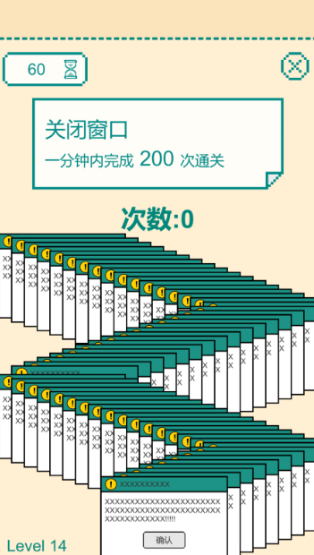 这款专为提升玩家手速而设计的闯关作品,玩家需在一分钟内对多个不同模式的内容开启挑战。系统设计出极为直观的简洁画面,只保留着最基础的点击功能,让玩家在心无旁骛的场景中快速拖拽或点击相关元素。本手游可以极限激发大家的手速极限,关闭弹窗或者炸气球等玩法,呈阶梯式难度逐渐上升,极为适合老幼群体锻炼。