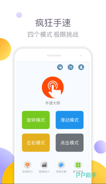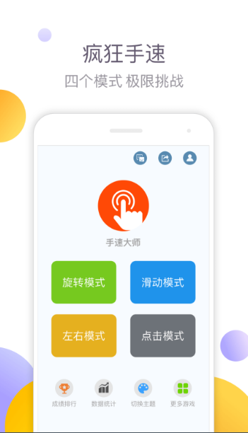 这款以测试和训练为中心的手速挑战小游戏,面向多个群体设计不同类的速度玩法,在新奇的模式中让大家享受锻炼。系统支持玩家随意切换视觉效果,在喜爱的环境下开启手速爆发或者耐力训练等模式,通过实时记录不断观察手速的变化。本手游设计多种基础的训练特点,玩家可利用自身专长进行滑动或旋转,查看好友排名进行对比。