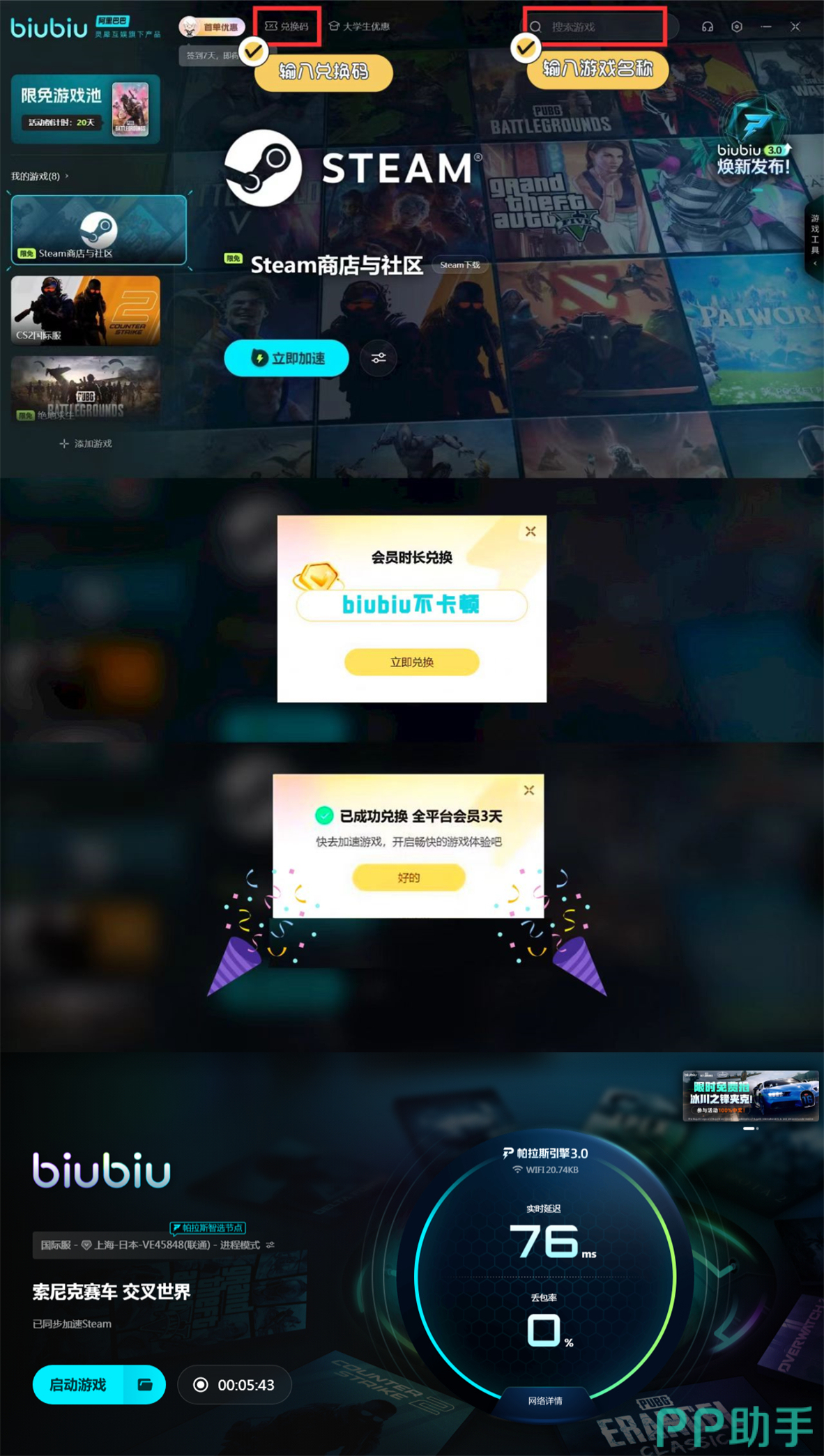 新用户注册biubiu账号即可获赠24小时会员时长,用于免费体验各类游戏的加速服务。每位用户还可使用一次兑换码【biubiu不卡顿】,领取额外三天的加速时长,充分感受其稳定高效的连接表现。凭借出色的性能优化与贴心的用户体验,biubiu已成为众多玩家连接国际服游戏的首选工具,点击上方图片即可获取下载方式。