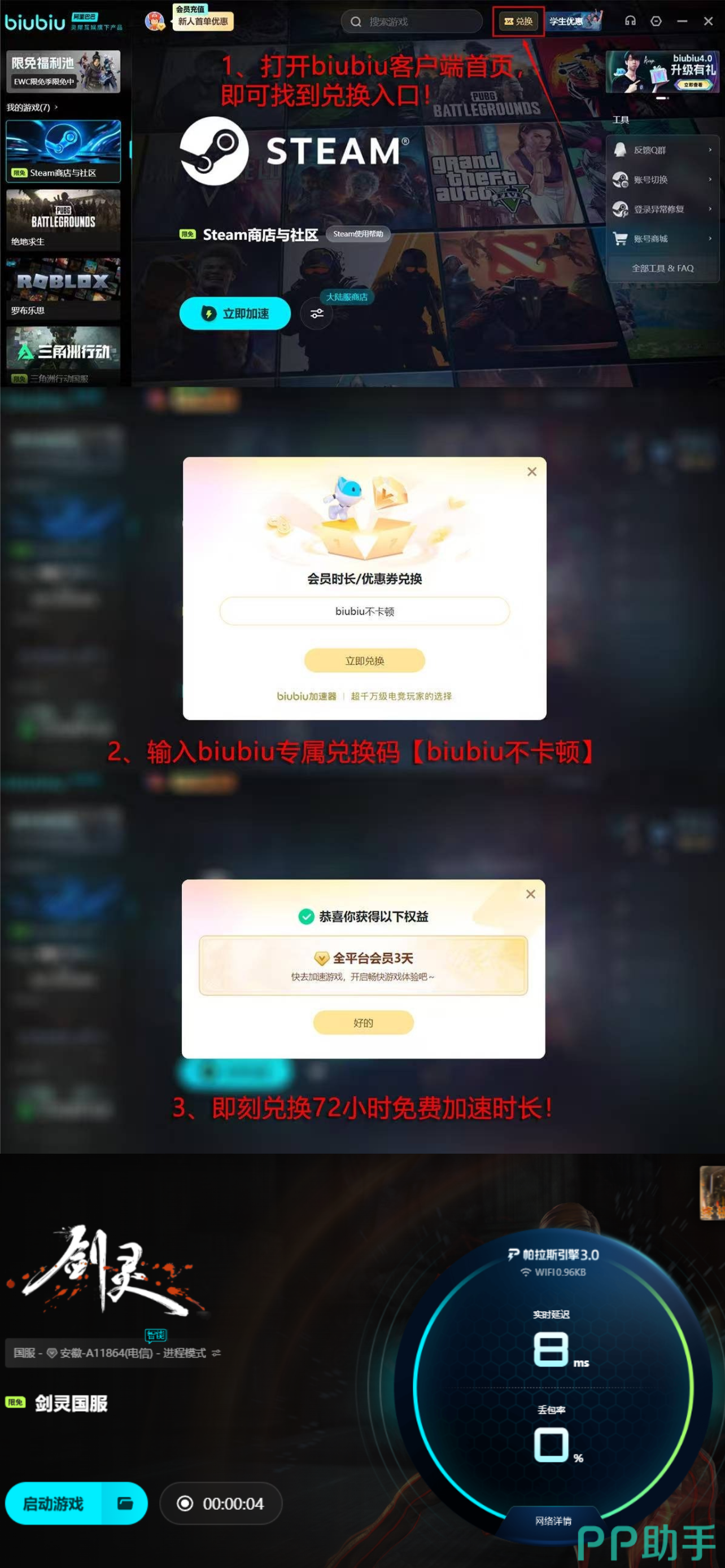 上方链接为推荐使用的网络加速服务,有需要的用户可前往了解,平台提供多项免费福利。新用户注册即可领取24小时免费加速时长,畅享流畅游戏画面。所有用户输入专属口令【biubiu不卡顿】还可额外获得72小时加速时长,延长稳定体验时间。同时,该平台与冠军选手Aixleft联合推出的帕拉斯引擎3.0技术,具备智能调节数据传输节奏的能力,可在长时间运行中持续监测网络状态,并自动切换至最优连接节点,无需手动操作,确保全程连接稳定、延迟更低。