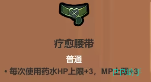 疗愈腰带:可以改造药水机制,每次使用永久提升HP/MP上限,也可以搭配无尽药瓶用,这样大家喝药还有机会白嫖额外药剂。